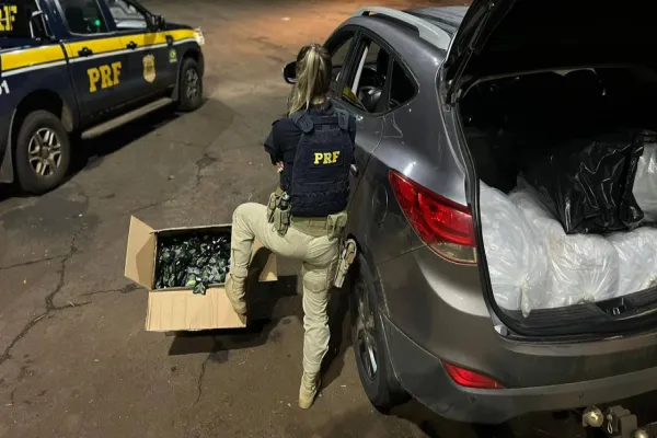 Às 3h20 de hoje, no quilômetro 714 da BR-277, uma equipe da PRF deu ordem de parada ao motorista de um Hyundai Tucson de placas paraguaias. O motorista, brasileiro, estava muito nervoso durante a abordagem policial. No porta-malas, a equipe da PRF encontrou quatro grandes sacos e uma caixa.