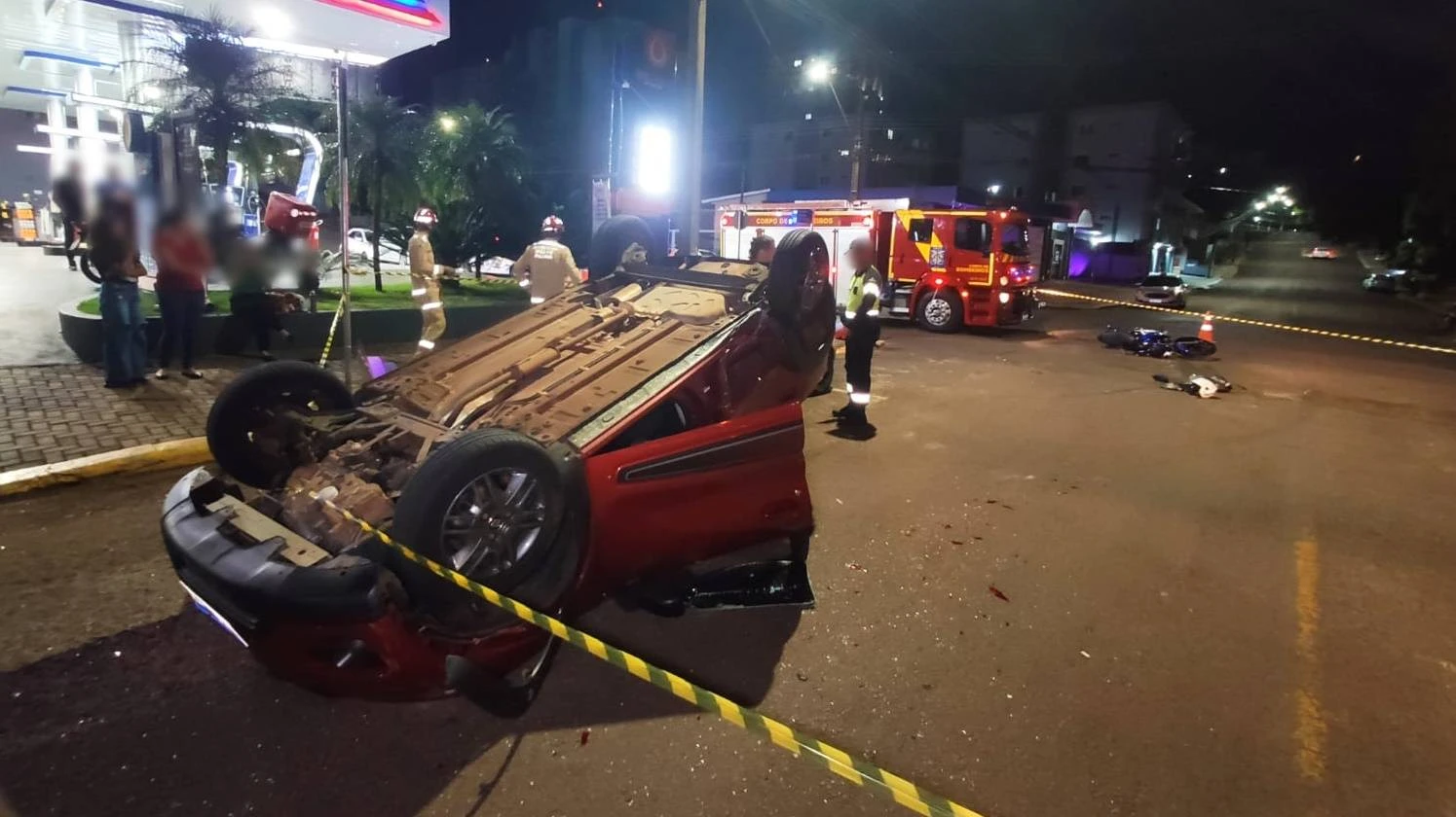 Um gravíssimo acidente de trânsito foi registrado na noite desta segunda-feira (25/03), no cruzamento da Rua São Paulo com a Rua Presidente Bernardes, no centro de Cascavel.