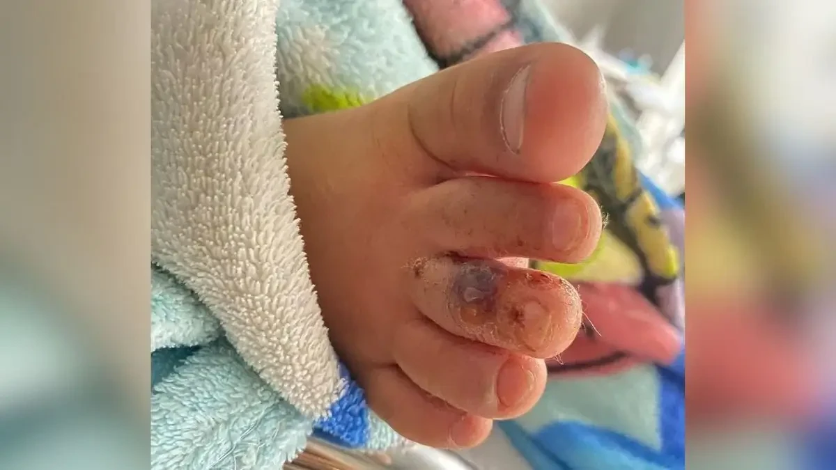 Uma foto compartilhada pela mãe da criança mostra o resultado dos exames. Em um documento, o profissional da saúde responsável pelos cuidados no caso detalhe que a pele estava com "bolha eritomitoda com presença de sangue". O relatório ainda aponta que a lesão é compatível com uma picada de animal peçonhento.