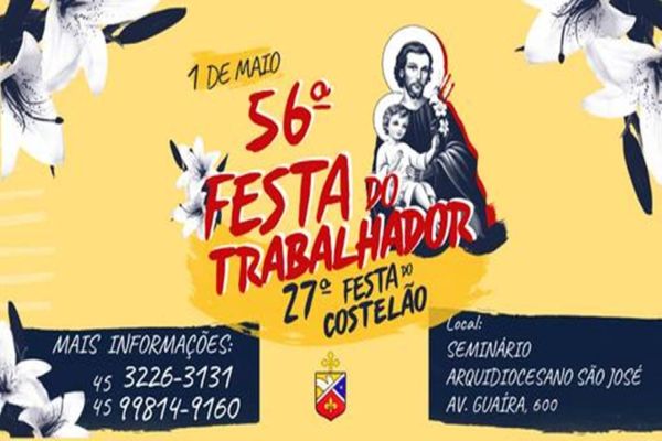A tradicional Festa do Trabalhador, promovida pelo Seminário São José da Arquidiocese de Cascavel, região Oeste do Paraná, chegou a sua 56º edição. O evento anual, que acontece sempre no dia 1º de maio, e que reúne mais de 15 mil pessoas, celebra neste ano, a 27ª edição do costelão de “fogo de chão”.