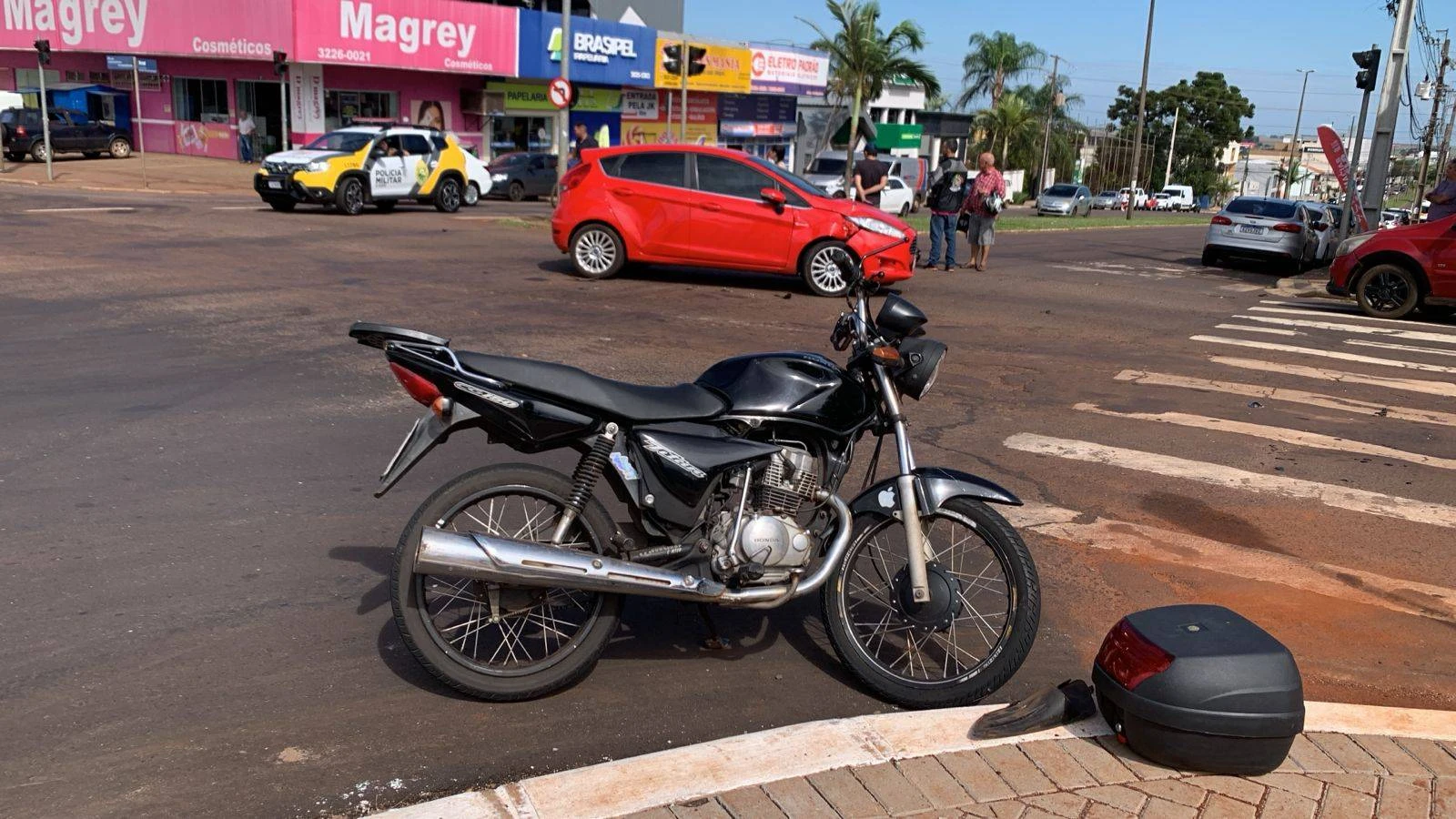 Um acidente de trânsito foi registrado nesta manhã de sexta-feira (12) na região oeste de Cascavel. Um carro e uma moto colidiram na Avenida Brasil, no cruzamento com a Rua Presidente Juscelino Kubitschek, resultando em uma pessoa ferida.