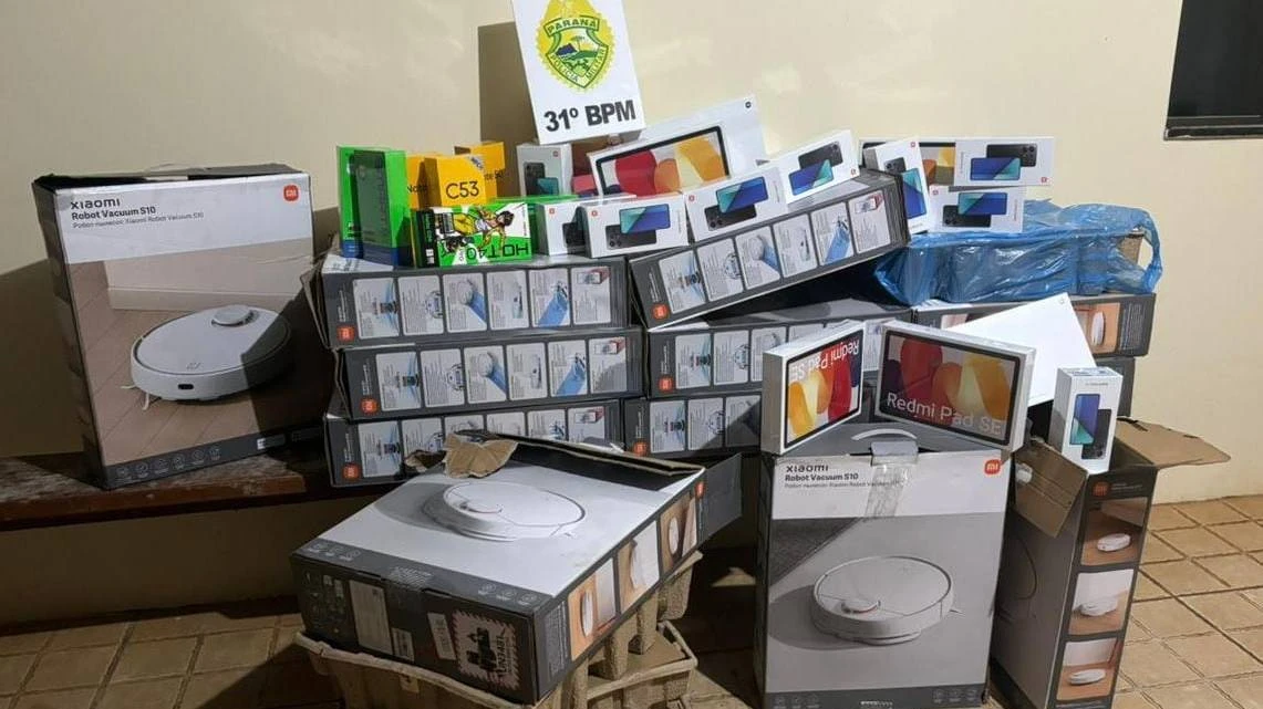 A ação ocorreu por volta das 04h00min, quando a equipe da Patrulha Rural abordou um veículo com dois ocupantes que transitava por uma área conhecida por ser rota de transporte de ilícitos. Suspeitando da carga do veículo, os agentes realizaram uma vistoria minuciosa, constatando que o mesmo transportava 12 caixas de robôs aspiradores, sendo que outros 04 aparelhos estavam fora das embalagens.