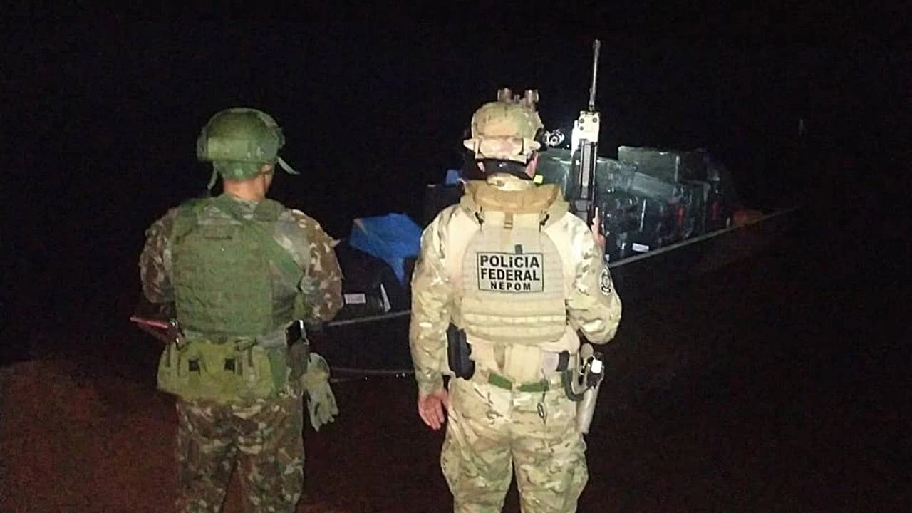 Ao inspecionar a embarcação, os policiais encontraram aproximadamente 50 caixas de cigarros estrangeiros, importados ilegalmente do Paraguai. Apesar das buscas na região, o piloto e possíveis tripulantes não foram localizados.