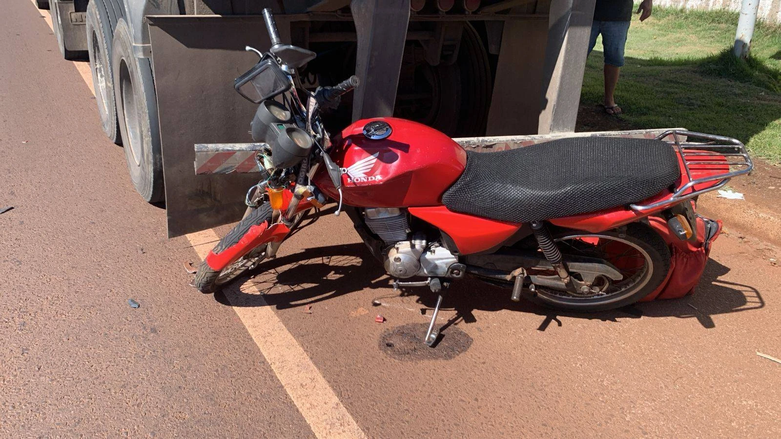 De acordo com o motociclista, ele seguia pela via quando foi fechado por um carro, o que o obrigou a fazer uma manobra evasiva. Ao desviar, ele perdeu o controle da moto e colidiu com uma carreta estacionada.