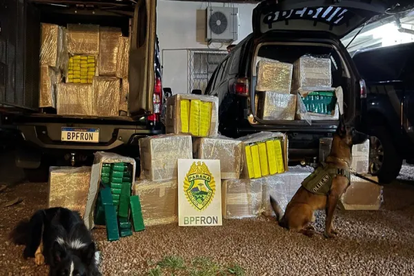 O Pelotão de Operações com Cães do Batalhão de Polícia de Fronteira (BPFRON) da Polícia Militar do Paraná, em mais uma ação de grande impacto na luta contra o tráfico de drogas e contrabando, apreendeu mais de uma tonelada de maconha e mais de 250 mil reais em eletrônicos sem os devidos desembaraços aduaneiros.