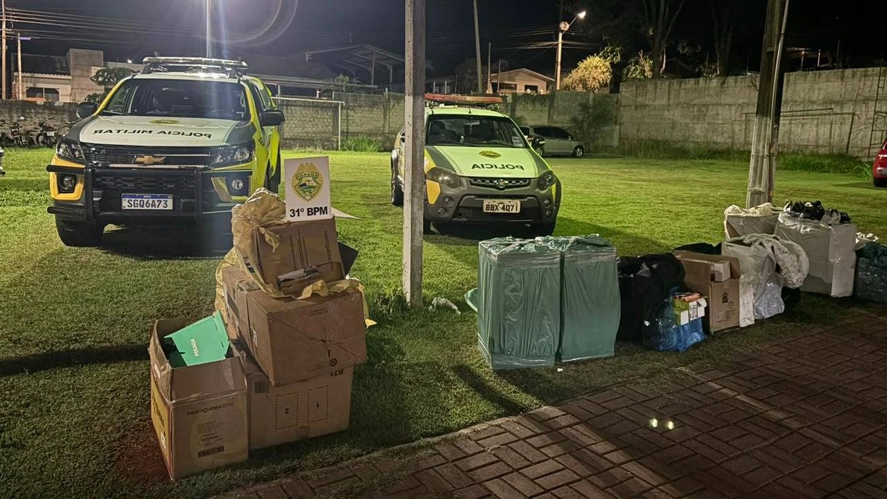 Ao abordar o veículo, os policiais militares identificaram cinco pessoas que estavam transportando os volumes, que continham diversos itens eletrônicos e cigarros eletrônicos. Segundo estimativa preliminar, o valor total da mercadoria apreendida ultrapassa R$ 80.000,00.