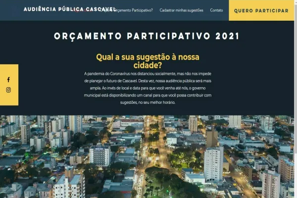 O site, além de atender à legislação, é uma alternativa estratégica para evitar aglomerações nesse momento de pandemia do novo coronavírus (Covid-19) e assegurar que os cascavelenses possam opinar sobre quais as políticas públicas deverão ser priorizadas no próximo ano, garantindo a cidadania nesse processo.