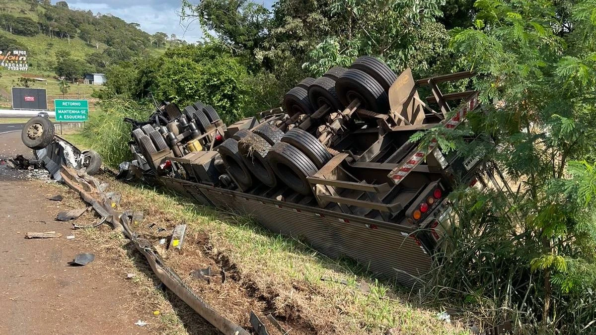 Para evitar a colisão, ele desviou para a direita, perdeu o controle da direção e saiu da pista, capotando a carreta.