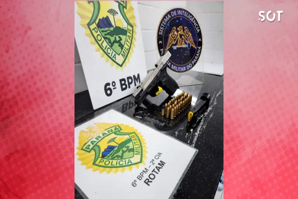 A equipe recebeu informações sobre um indivíduo armado no local e, ao chegar, abordou o suspeito. Durante a revista pessoal, foi encontrada uma pistola Taurus PT 24/7 G2 calibre 9mm com 35 munições intactas.