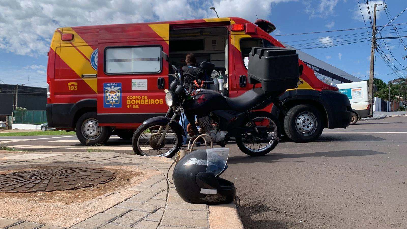 Motociclista de 51 anos fica ferida em acidente na Avenida Rocha Pombo em Cascavel