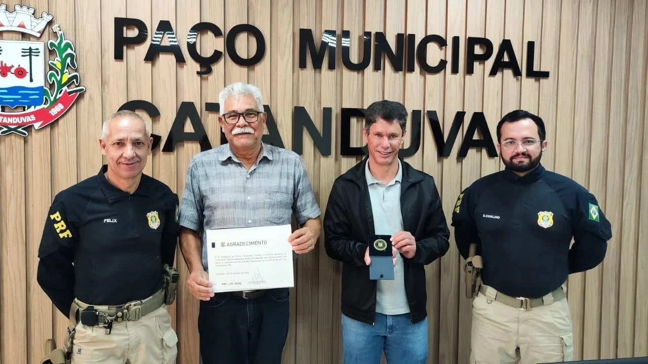 A Polícia Rodoviária Federal (PRF) homenageou nesta terça-feira (21) o Governo Municipal de Catanduvas com a Moeda Institucional e um certificado de agradecimento pela parceria mantida em benefício da segurança pública e pelos resultados positivos na atuação do serviço público.