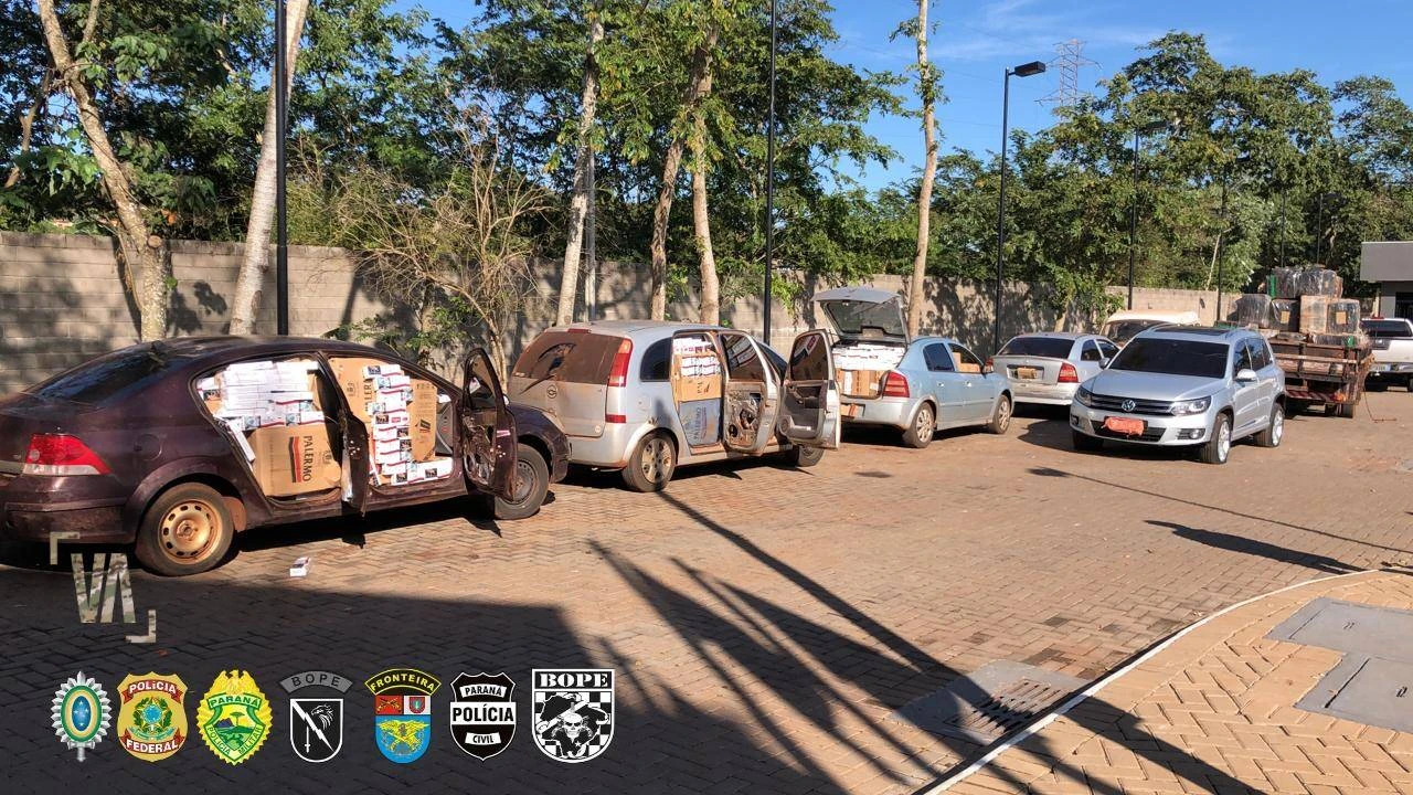 Ocorrência 1 – Guaíra/PR - Durante patrulhamento de rotina na zona rural de Guaíra/PR, policiais visualizaram movimentação suspeita de comboio atrás de mata fechada da região e resolveram realizar aproximação para abordagem. No local foram apreendidos 04 veículos carregados com cigarros de origem paraguaia, totalizando cerca 100 caixas de cigarros.