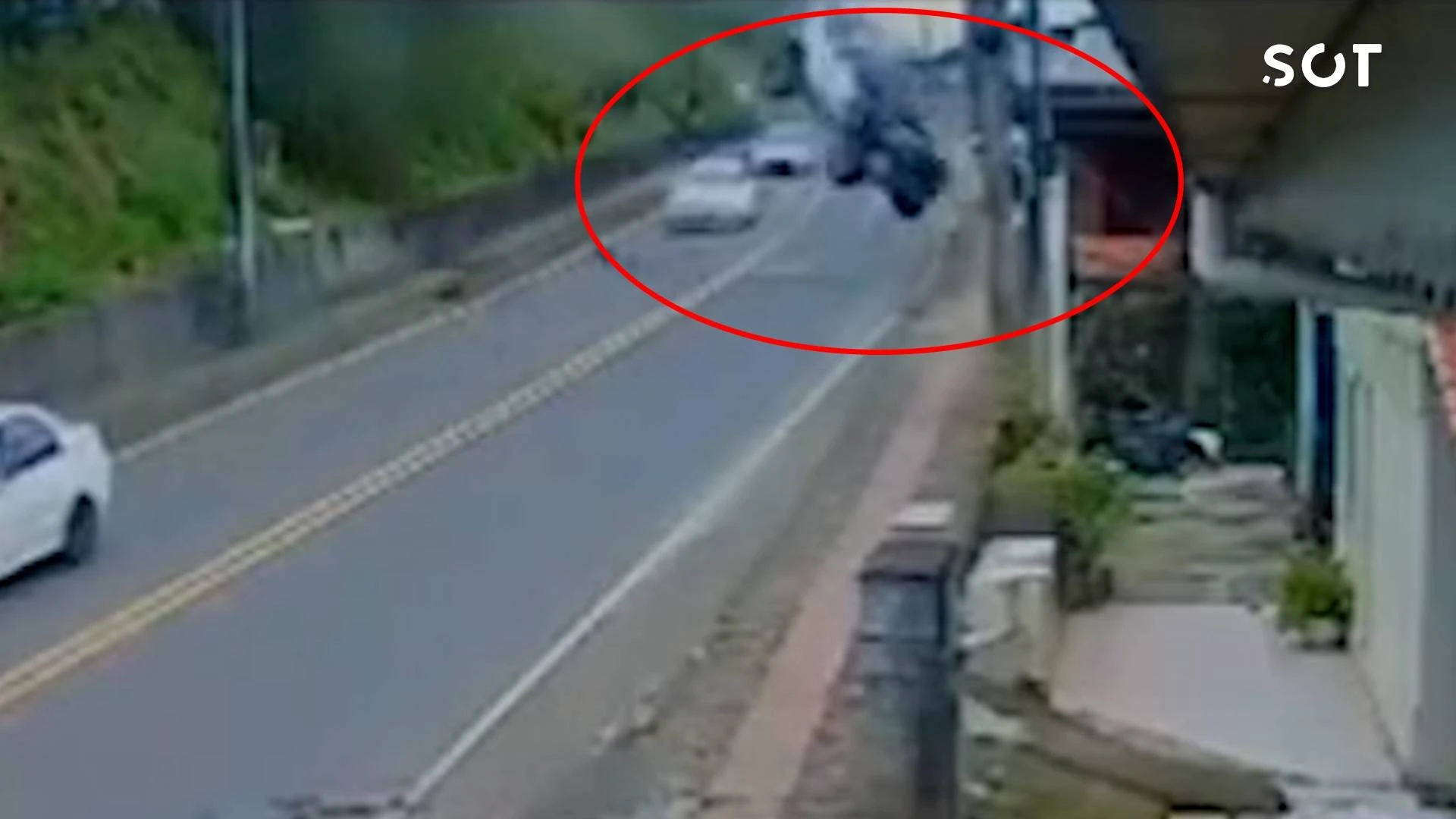 Herval d'Oeste, SC - 27 de maio de 2024 - Um acidente de trânsito inusitado chocou os moradores de Herval d'Oeste, no Meio-Oeste catarinense, na tarde deste domingo (26). Uma mulher ficou ferida após o carro que ela dirigia perder o controle da direção, "voar" sobre uma rua e colidir contra uma casa.