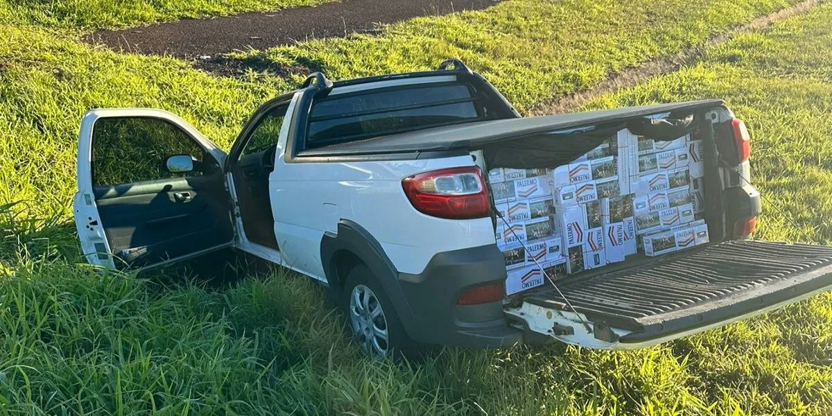 No interior do veículo e no compartimento de carga, a equipe da PRF encontrou diversas caixas de cigarros de origem paraguaia, totalizando aproximadamente 20 caixas.