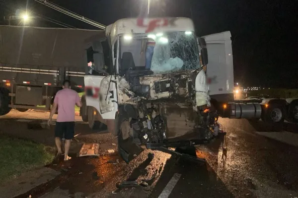Santa Tereza do Oeste, PR - Duas carretas colidiram frontalmente na BR-277, no Trevo de Santa Tereza do Oeste, na noite desta segunda-feira (03), em frente a um posto de combustíveis.