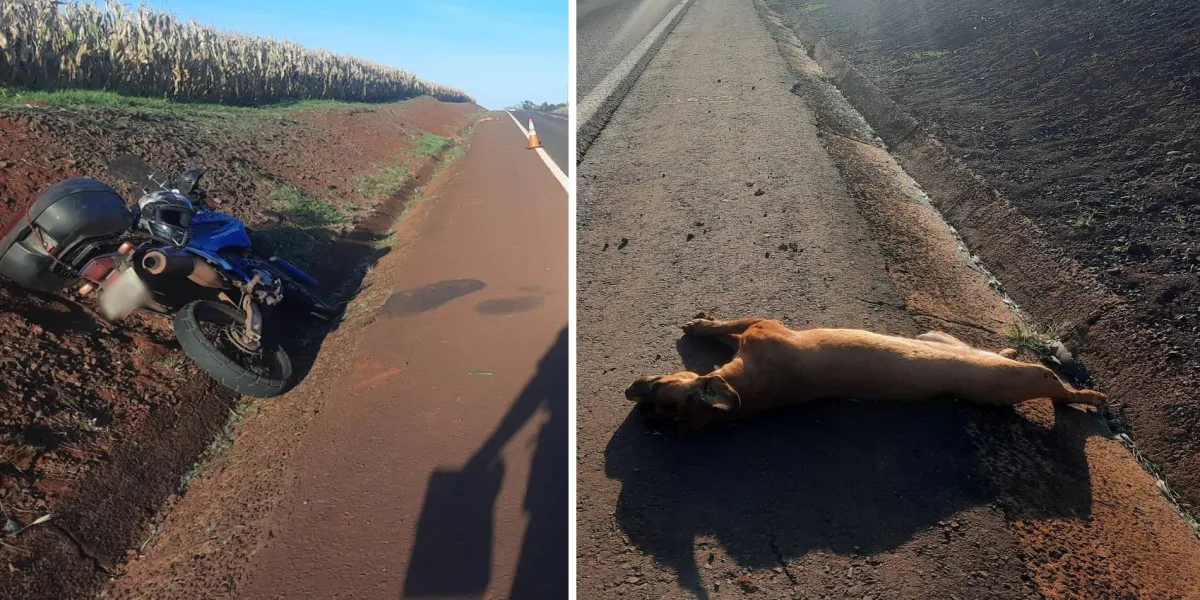 De acordo com o relatório policial, o motociclista trafegava pela PR-585 no sentido de São Pedro do Iguaçu ao entroncamento com a PR-317. Ao atingir o km 032+800m, um cachorro atravessou a pista de rolamento. Incapaz de desviar a tempo, o motociclista atropelou o animal, resultando na perda de controle da motocicleta e no subsequente tombamento à margem direita da rodovia, conforme o sentido de tráfego do veículo.