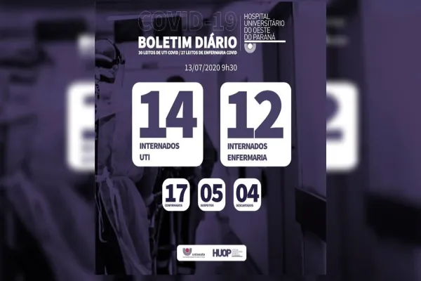 "É com pesar que o Hospital Universitário do Oeste do Paraná (Huop) comunica a morte de um paciente com exame positivo para Sars-Cov-2.