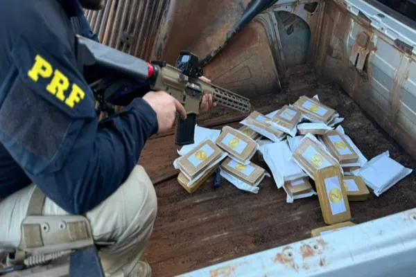 A Polícia Rodoviária Federal (PR) apreendeu na tarde desta terça-feira (11), em Alto Paraíso (PR), um fuzil de calibre 7,62 e 25 quilos de pasta base para a produção de cocaína, escondidos na carroceria de um veículo utilitário.