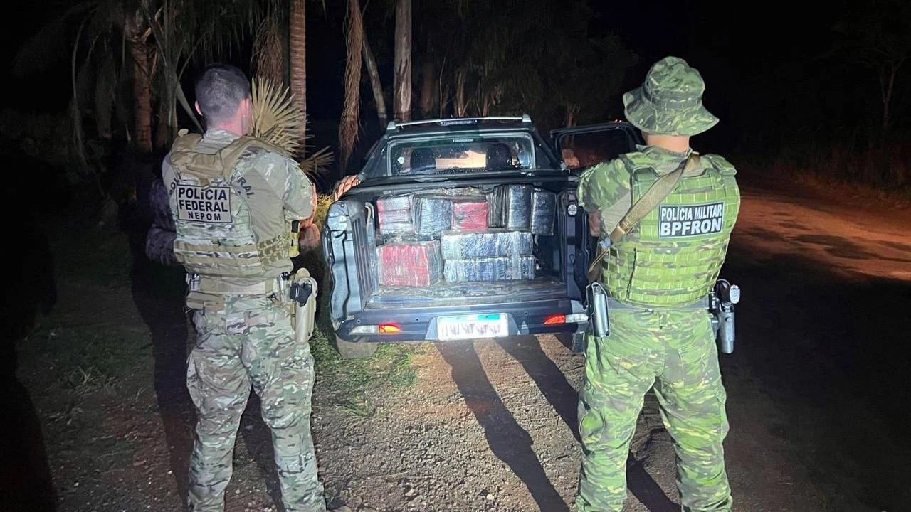 As ações aconteceram durante patrulhamento estratégico no Rio Paraná, quando os policiais notaram uma embarcação realizando a travessia irregular do Paraguai para o Brasil. Ao se aproximarem do porto clandestino utilizado para o desembarque da droga, as equipes identificaram um veículo sendo carregado com diversos fardos.