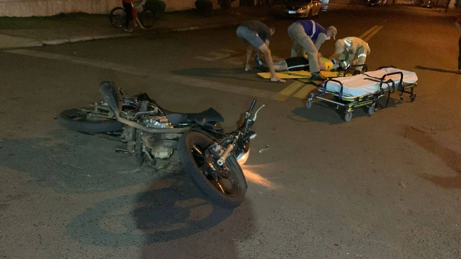 Um motociclista de 23 anos ficou ferido após se envolver em um acidente de trânsito na noite desta quarta-feira (19), na Rua Europa, esquina com Rua Havana, no Bairro Periolo, em Cascavel.