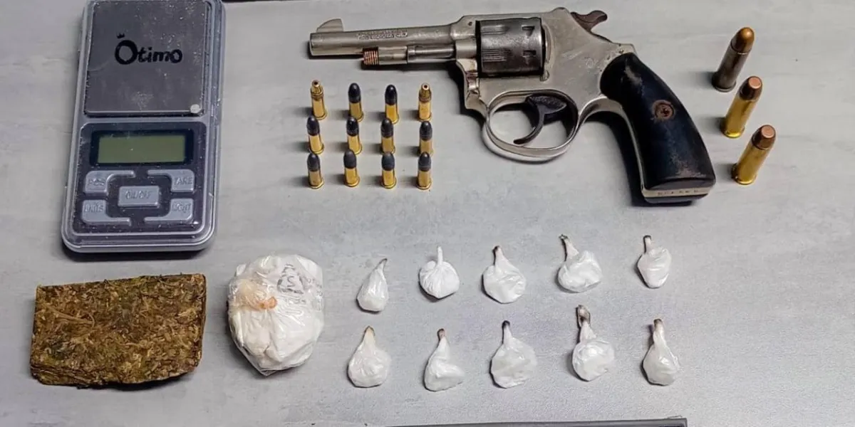 Durante a busca, os policiais encontraram em posse de um homem e um adolescente: 11 unidades de cocaína (pesando 25 gramas), uma porção de maconha (30 gramas), 15 munições intactas (12 de calibre .22mm e 3 de calibre .38mm), uma balança de precisão, um revólver marca Rossi calibre.22mm, anotações referentes ao tráfico de drogas e um aparelho celular Xiaomi de cor azul.