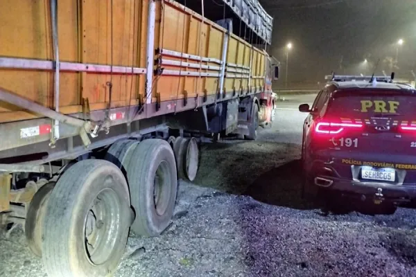 PRF flagra carreta transitando sem 6 pneus em Tijucas do Sul