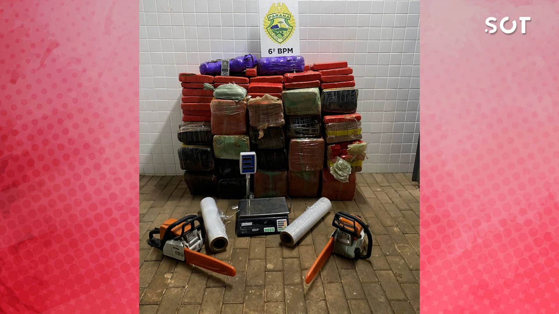 Em uma ação conjunta, as equipes do 6º BPM apreenderam 330 kg de maconha e recuperaram duas motosserras sem nota fiscal na noite desta quinta-feira (21), na BR 467, em Cascavel.