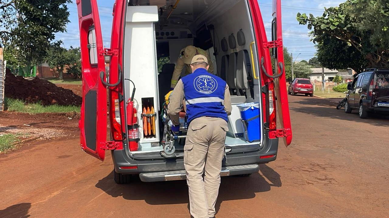 Uma mulher motociclista foi socorrida na tarde deste sábado (29) após sofrer um acidente de trânsito no Bairro Floresta, em Cascavel. A queda aconteceu na Avenida Uirapuru, próximo à esquina com a Rua Tangará.