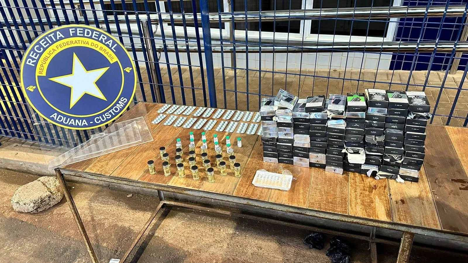 Entre os produtos apreendidos estavam cerca de 30 ampolas e 250 comprimidos de hormônios, além de 100 cigarros eletrônicos. A responsável pelas mercadorias tem registros anteriores em Minas Gerais, onde figura em ocorrências relacionadas ao comércio. Um dos registros a menciona como responsável por venda irregular de cigarros eletrônicos, especialmente direcionados a estudantes, implicando riscos à saúde pública.