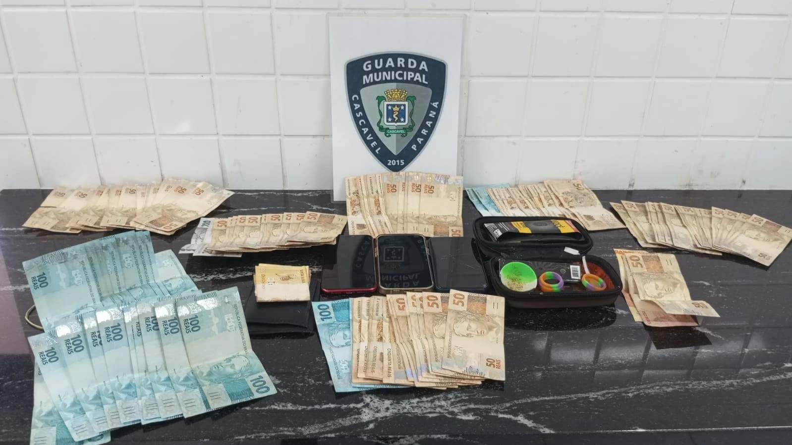 Cascavel, PR - Na tarde desta sexta-feira (05), a Guarda Municipal de Cascavel prendeu dois homens, um de 21 anos e outro de 24 anos, por receptação, posse de dinheiro sem origem comprovada e posse de droga. A ação aconteceu na Avenida Tancredo Neves, após a identificação de um Renault Kwid com registro de furto circulando pela região.