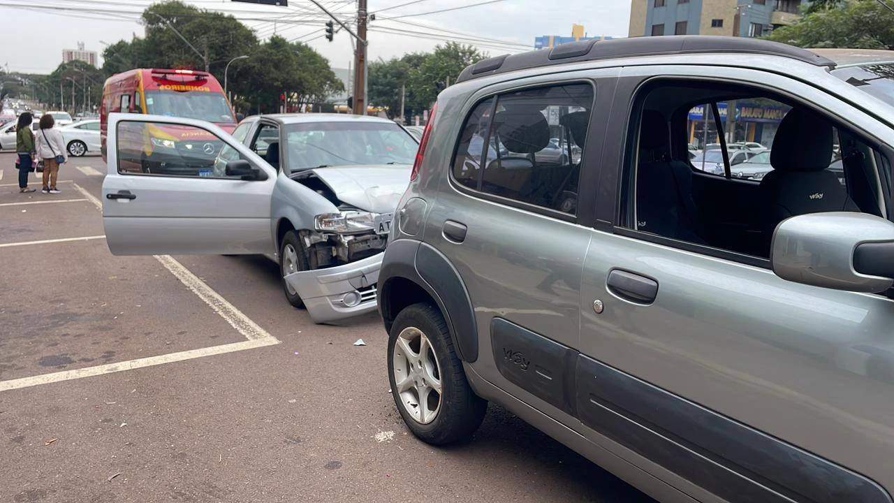 Gestante é socorrida após colisão traseira no Centro de Cascavel