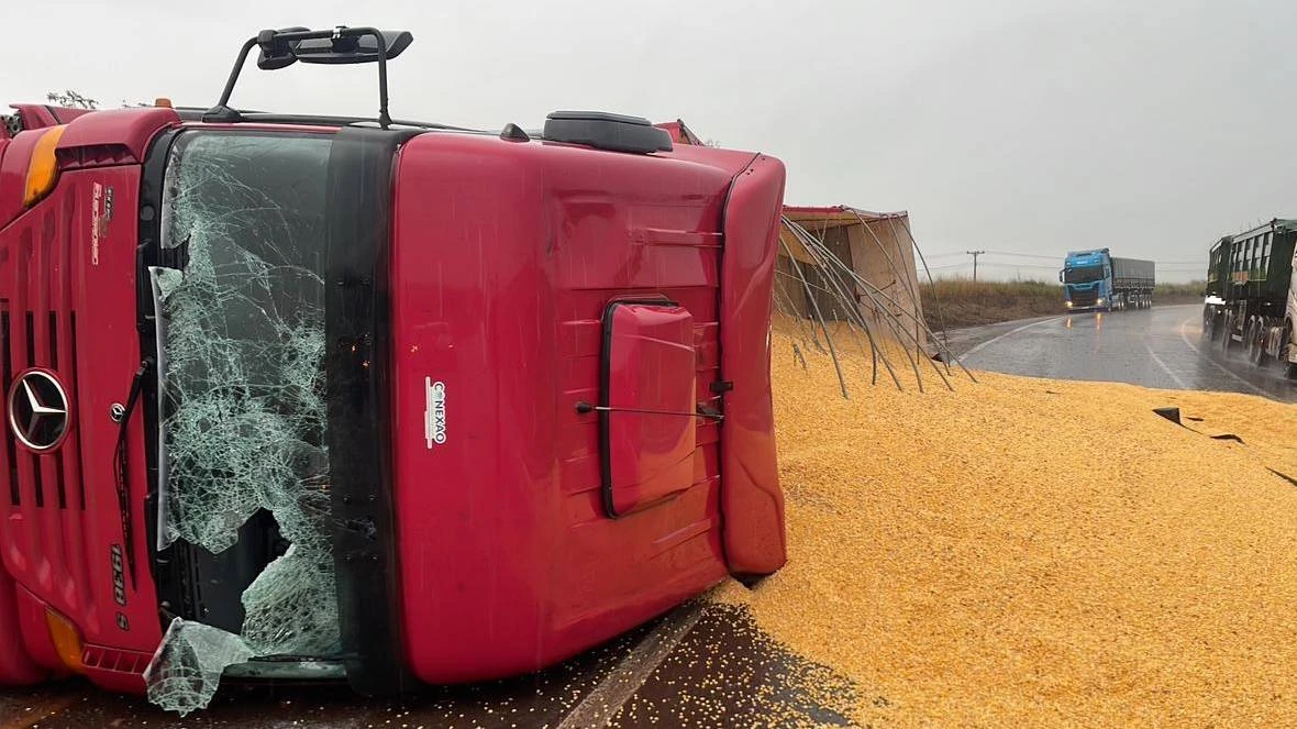 Uma carreta carregada com milho tombou na BR-163, entre Cascavel e Sede Alvorada, na tarde desta quinta-feira (11), interditando o trecho da rodovia por cerca de duas horas. O acidente aconteceu por volta das 14h, próximo ao km 640, e deixou a pista sentido Toledo completamente bloqueada.