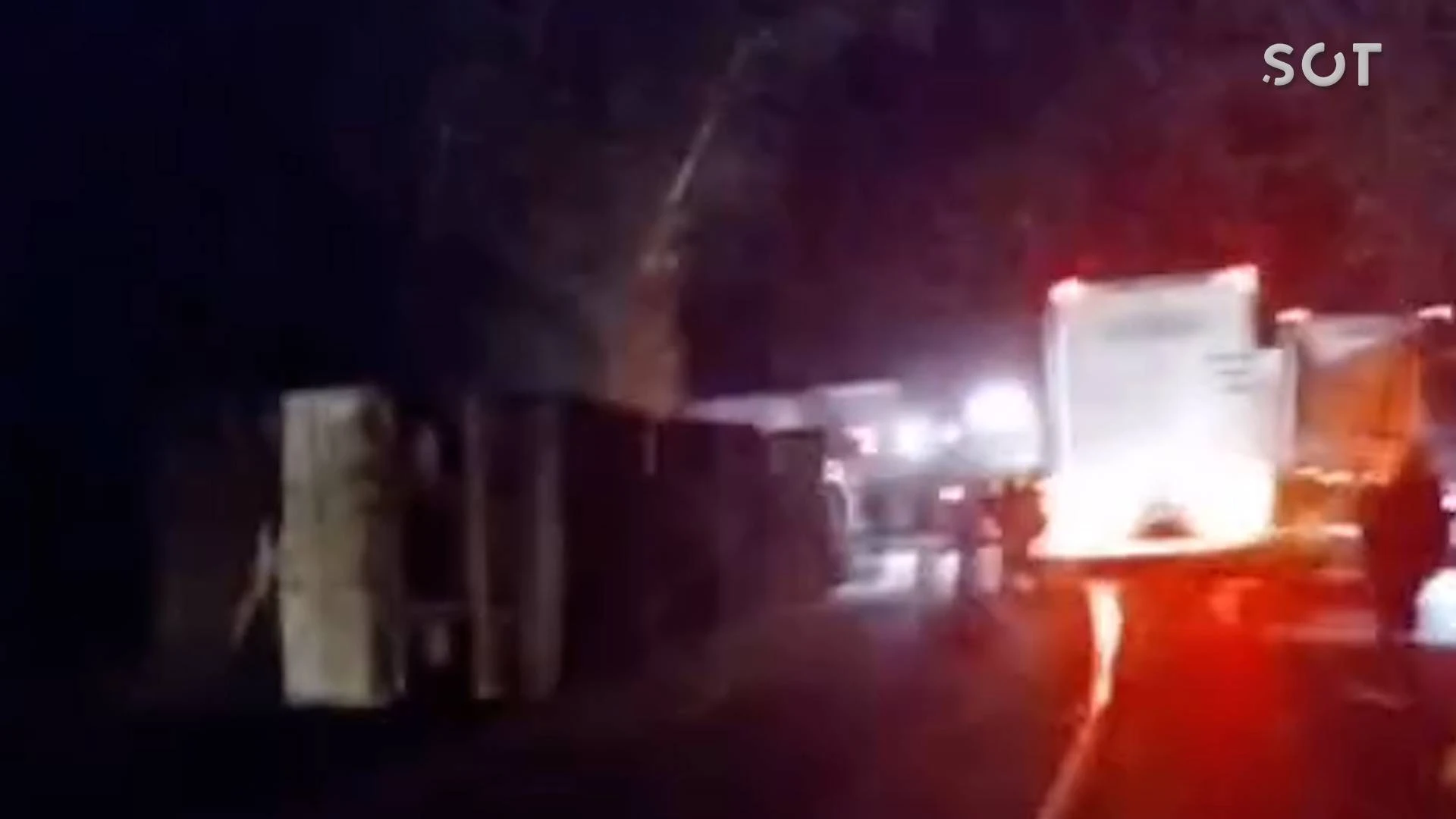 De acordo com informações da Polícia Rodoviária Federal (PRF), o condutor, um paraguaio de 43 anos, perdeu o controle do veículo ao fazer uma curva em descida para a direita. O caminhão, que transportava soja, tombou e a carga se espalhou pela pista e fora dela.