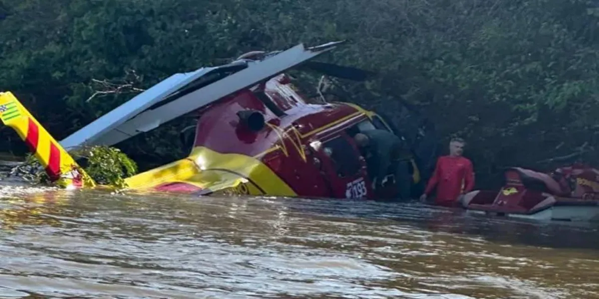 Helicóptero dos Bombeiros faz pouso forçado no Rio Araguaia; Piloto sofre ferimentos leves