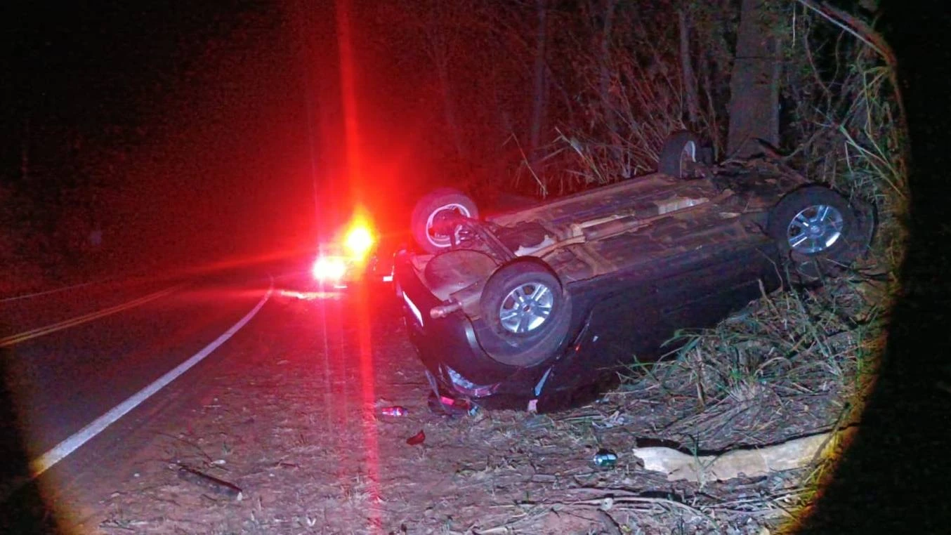 Carro sai da pista e capota em árvore na PR-490 em Altônia