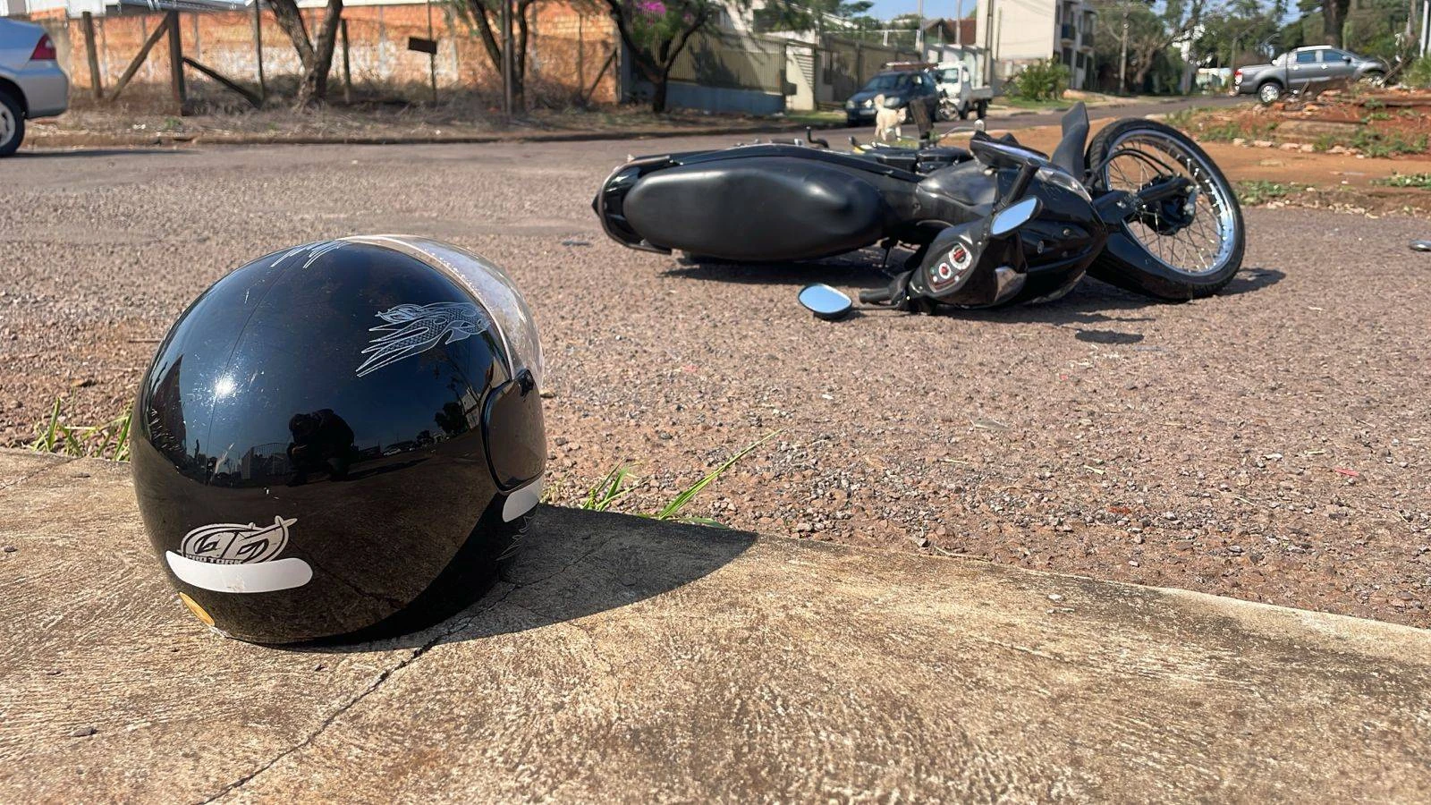 Um acidente de trânsito envolvendo uma motocicleta foi registrado na tarde desta quinta-feira (1), no bairro Alto Alegre, em Cascavel. O fato ocorreu no cruzamento das ruas Públio Pimentel e Silvino Blender.