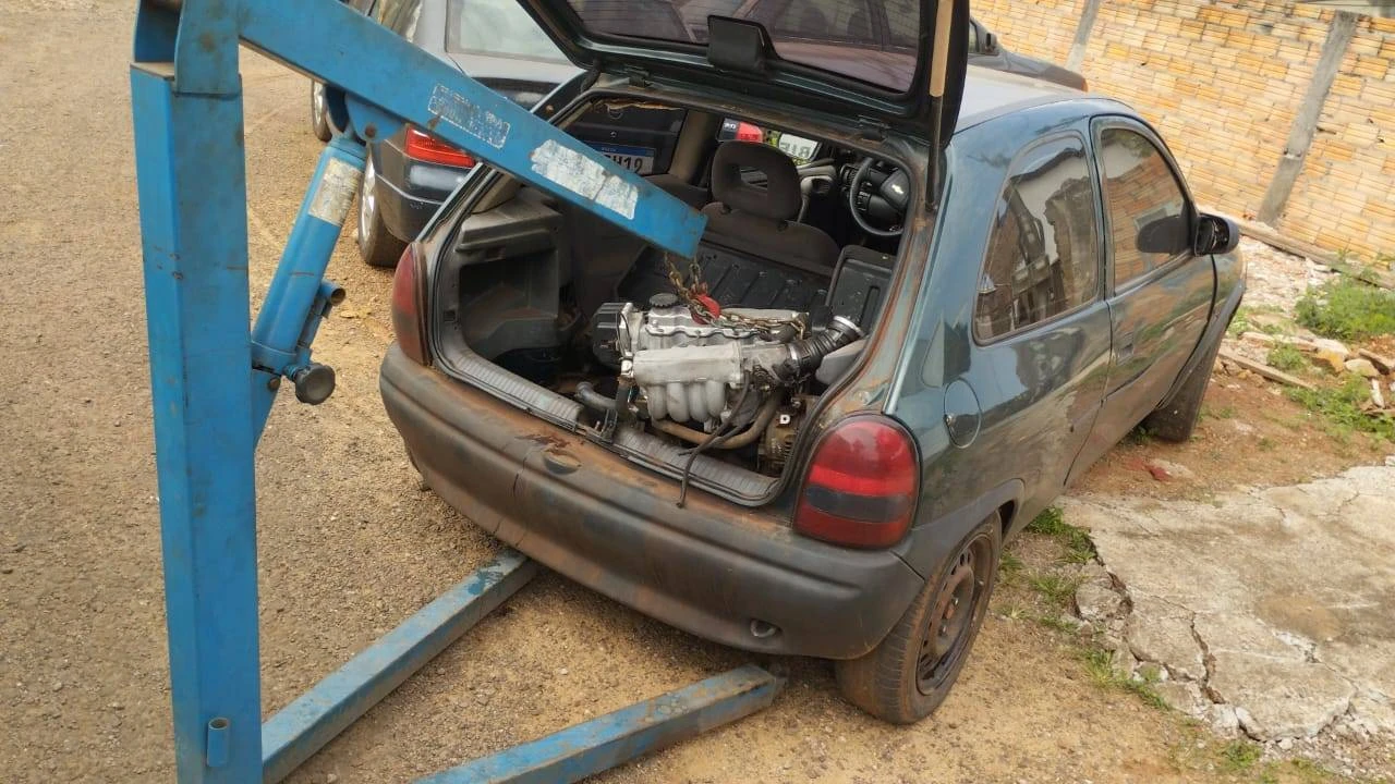 Durante um patrulhamento de rotina, a equipe da Patrulha Ambiental localizou o veículo com as placas trocadas e o motor removido. Diante das evidências, o proprietário da oficina foi preso em flagrante por receptação.