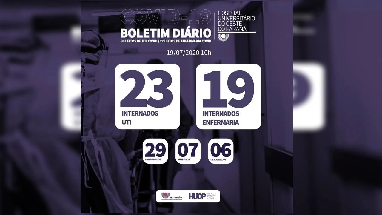 É com pesar que o Hospital Universitário do Oeste do Paraná (Huop) comunica a morte de um paciente com exame positivo para Sars-Cov-2.