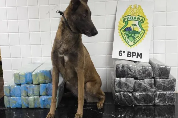 ma operação conjunta entre a Polícia Militar e um cão farejador resultou na apreensão de 46 kg de maconha no terminal rodoviário de Cascavel, na Avenida Assunção, número 1757, por volta das 22h desta sexta-feira.
