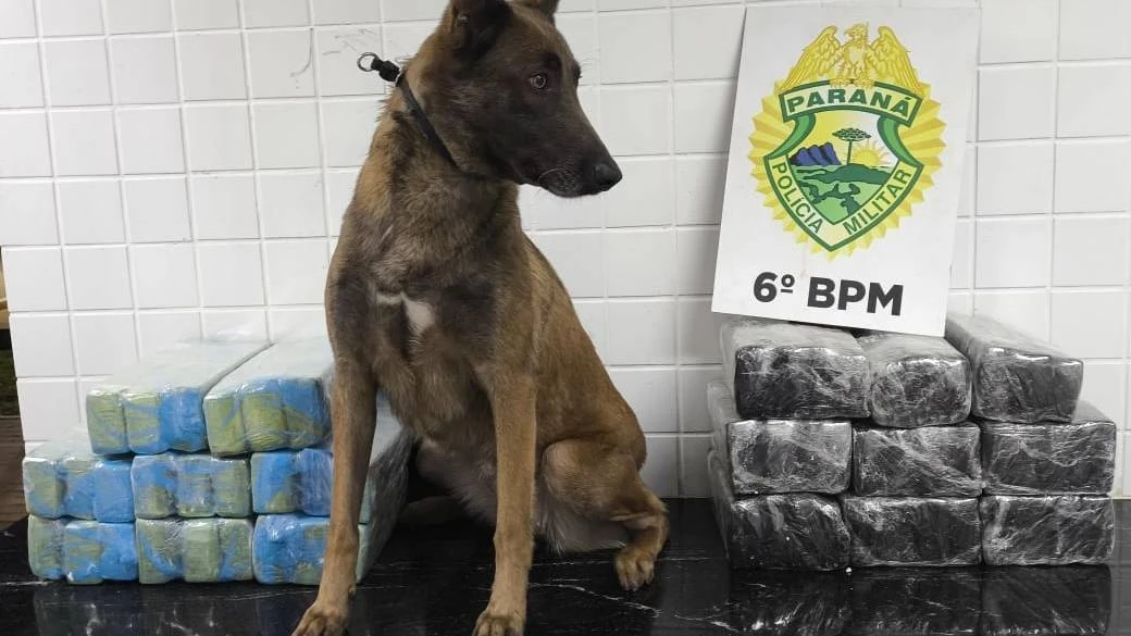 Cachorro farejador descobre 46 kg de maconha em ônibus em Cascavel