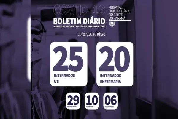 É com pesar que o Hospital Universitário do Oeste do Paraná (Huop) comunica a morte de um paciente com exame positivo para Sars-Cov-2.