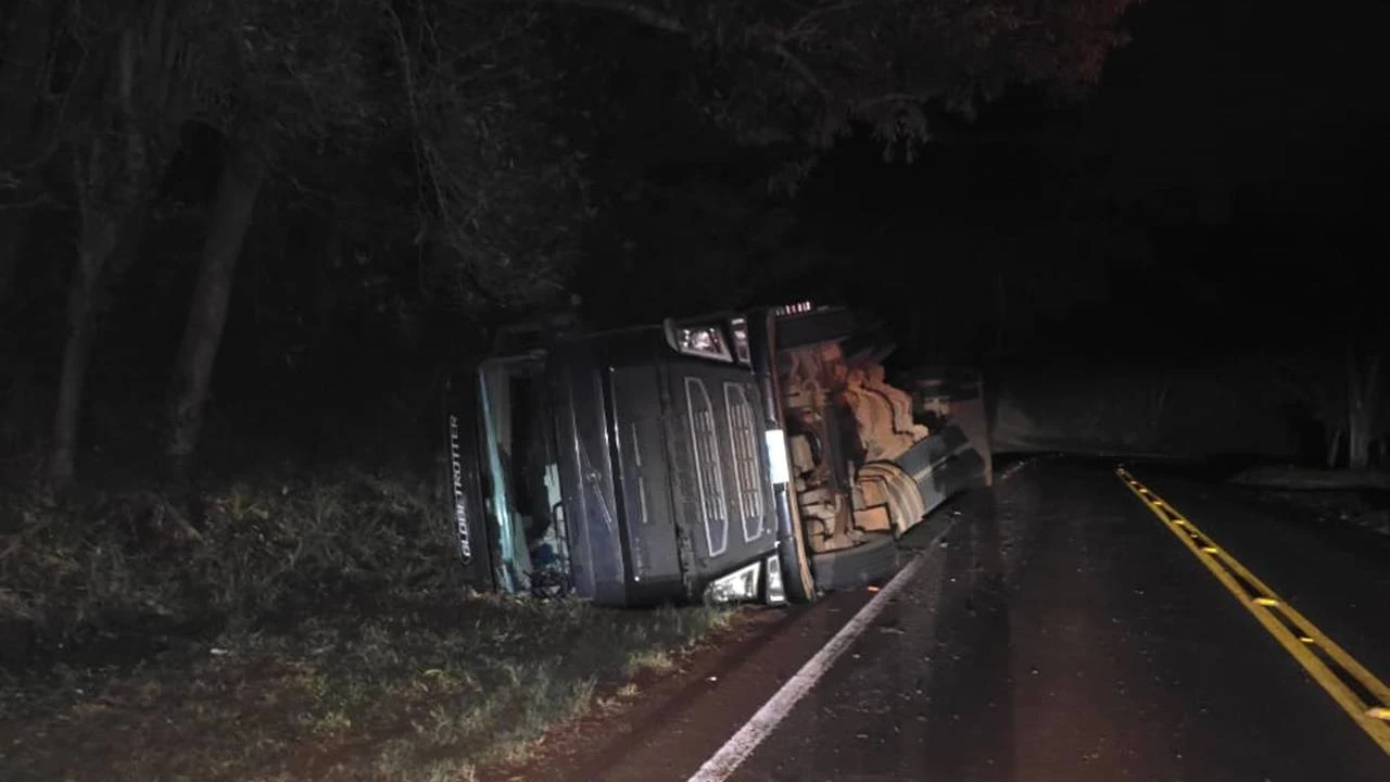 De acordo com informações preliminares, o veículo, um caminhão trator Volvo FH 540 com placas de Sarandi (PR), tracionando um conjunto de semi-reboques Noma, também com placas de Sarandi (PR), seguia no sentido Cafelândia a Nova Aurora quando tombou à margem direita da pista, no km 277,8.