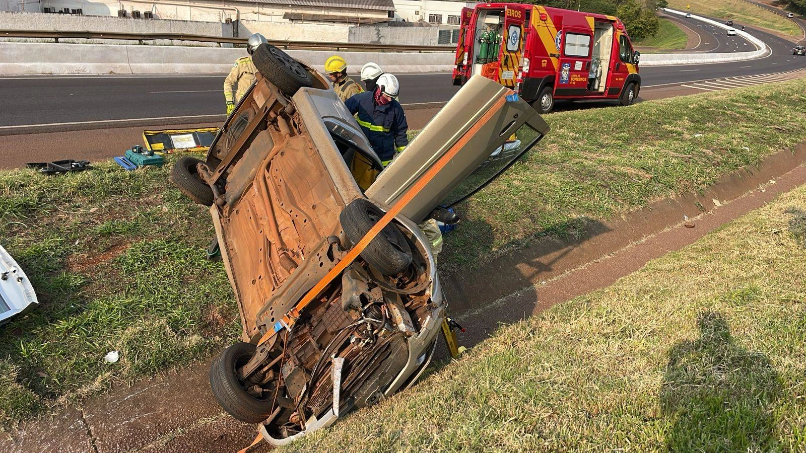 Capotamento na PRc-467 deixa mulher ferida em Cascavel