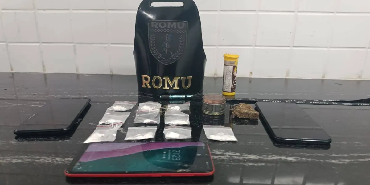 A equipe Romu abordou um carro com três ocupantes, todos com idade entre 22 e 26 anos. Durante a abordagem, um dos jovens tentou se desfazer de um frasco de chocolate recheado com cocaína. Após a revista no veículo, foram encontrados também maconha e mais cocaína.