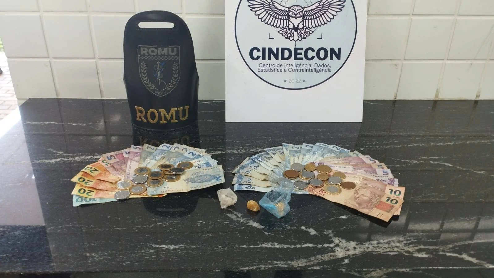 Uma equipe da Ronda Ostensiva Municipal (ROMU) foi deslocada até o endereço, onde localizou cinco indivíduos do sexo masculino, sendo que dois deles eram menores de idade. Com os indivíduos, foram encontradas pedras de crack e uma quantia em dinheiro.