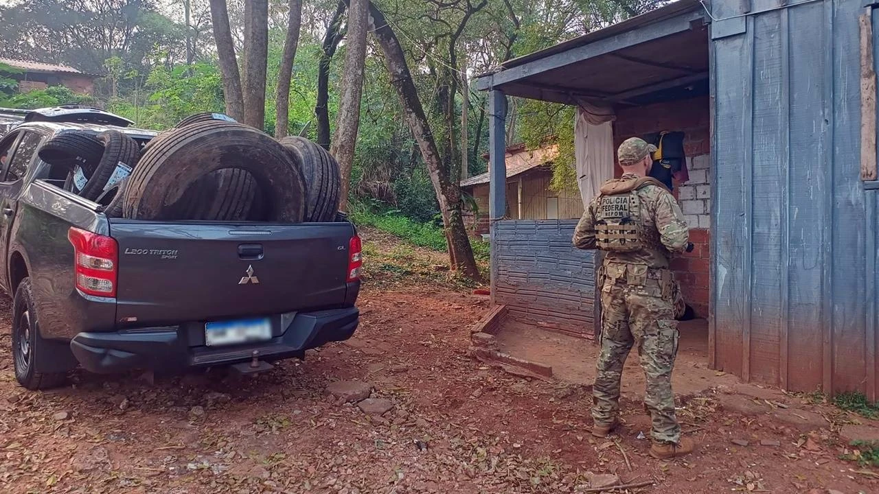 A ação policial teve início após a equipe identificar um intenso movimento de veículos em um conjunto residencial próximo à aduana da Ponte Internacional da Amizade. Ao abordar um veículo na região, os agentes encontraram pneus de caminhão de origem estrangeira e, seguindo as pistas, localizaram o depósito.