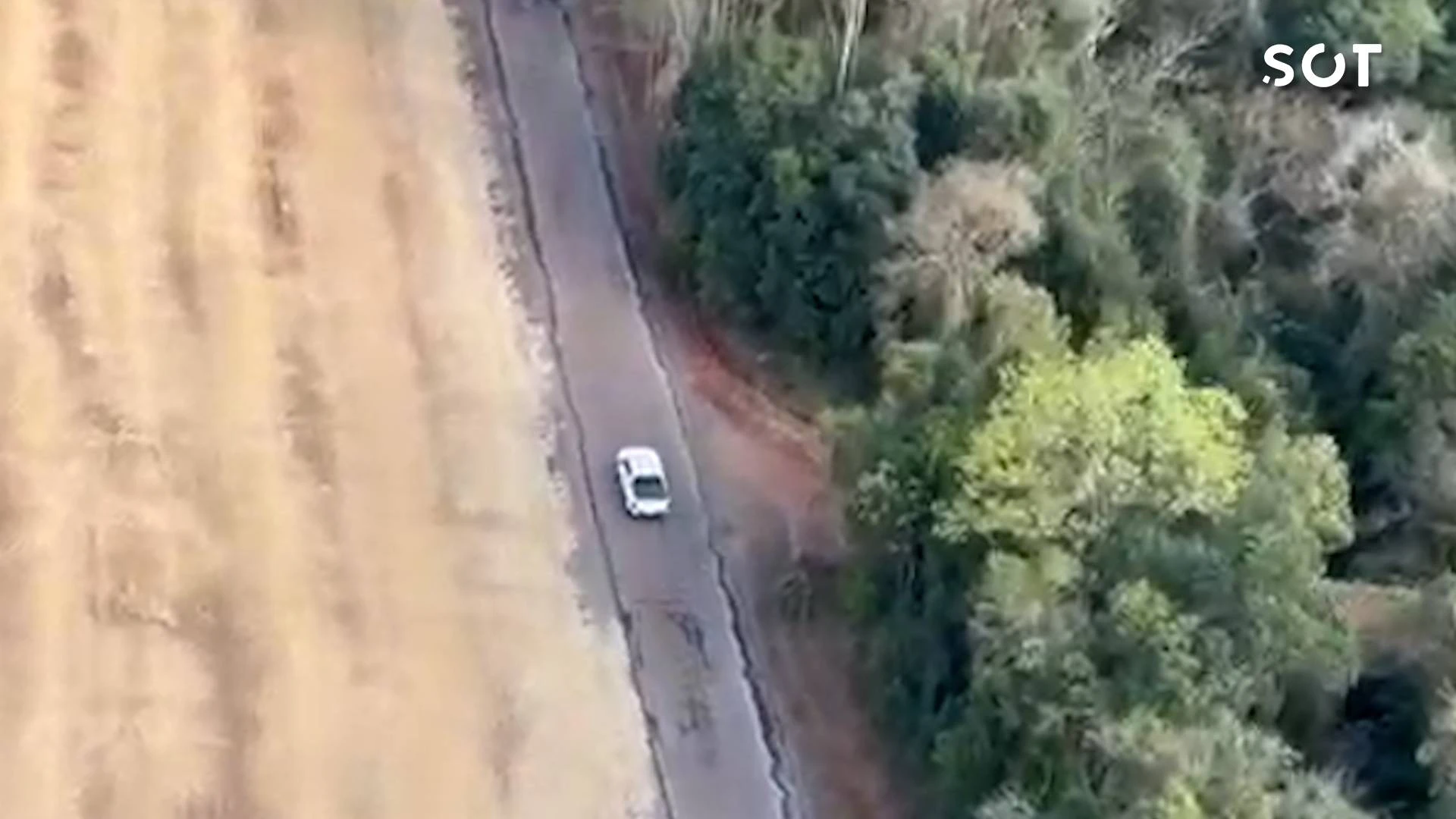 A Fiat/Strada foi abordada e o condutor detido. No entanto, ao tentar abordar a VW/Amarok, o motorista fugiu pela BR-277 e adentrou em uma estrada vicinal próximo ao pedágio de Santa Tereza do Oeste. A aeronave Falcão 12 acompanhou a fuga e, em determinado momento, o condutor abandonou o veículo e fugiu para uma mata fechada.