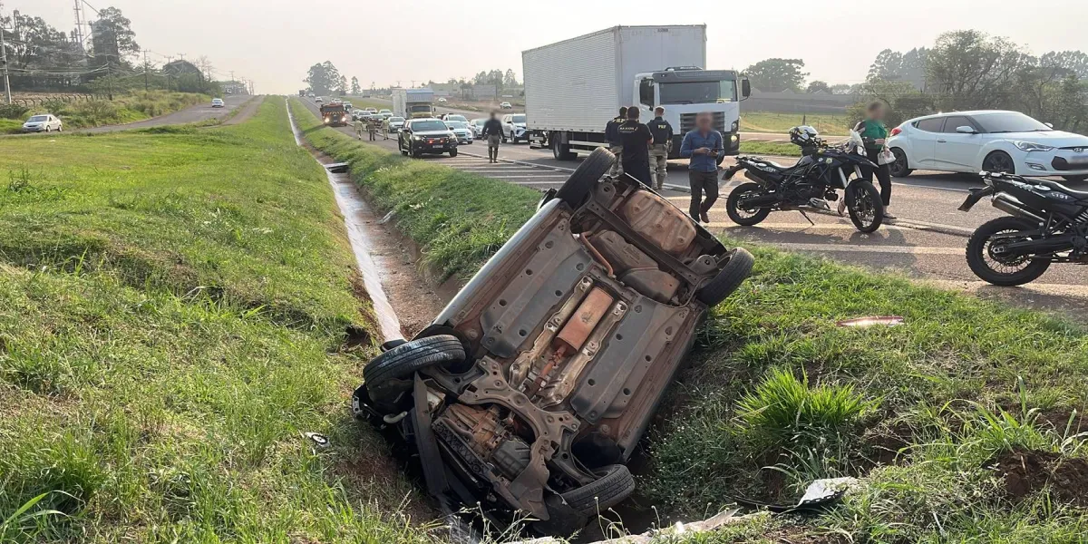 Capotamento na BR-277 deixa motorista ferida em Cascavel