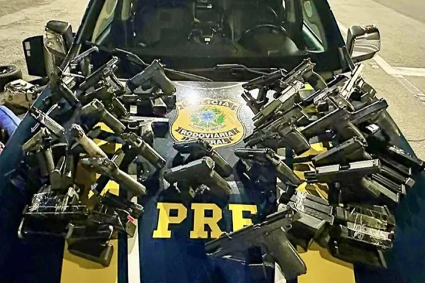 Polícia Rodoviária Federal (PRF), em conjunto com a Força Integrada de Combate ao Crime Organizado no Paraná (FICCO/PR), apreendeu 28 pistolas e 59 carregadores com um casal de 30 anos, na BR-277, em Balsa Nova (PR).