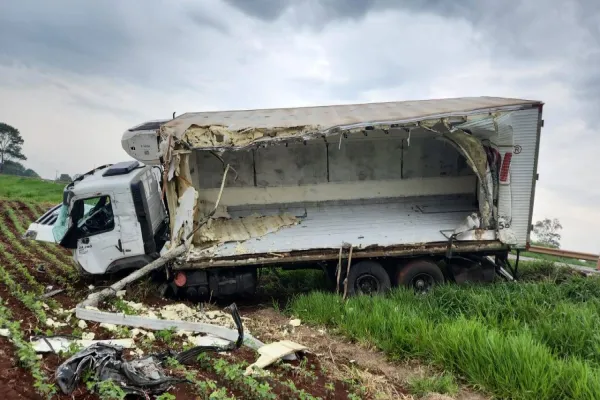 Três caminhões se envolvem em violenta colisão na BR-163 no oeste do Paraná